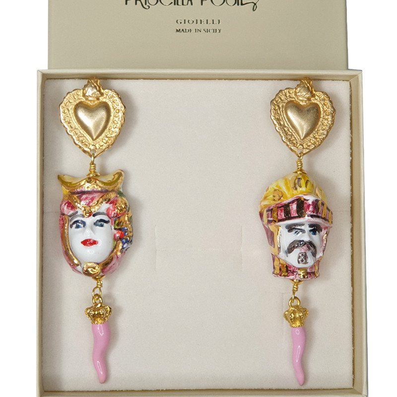 Scopri un gioiello unico, autentico e carico di significato. Gli Orecchini Teste di Moro in Ceramica Portafortuna di Priscilla Posh Gioielli sono un omaggio profondo alla tradizione siciliana, alla sua cultura millenaria e alla passione che da sempre la contraddistingue. Ogni pezzo racconta una storia, ed è pensato per chi ama indossare la bellezza della Sicilia con eleganza e carattere.